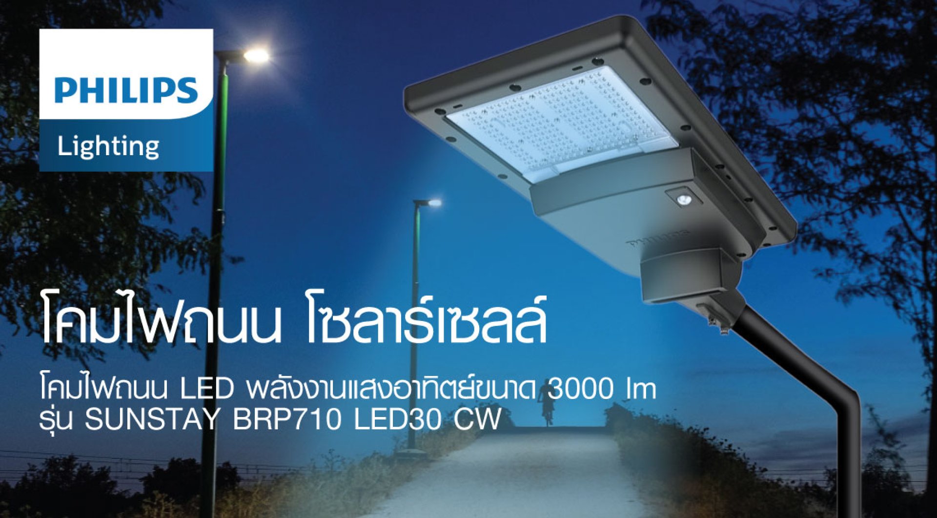 โคมไฟถนนโซล่าเซลล์คุณภาพสูงจาก Philips ให้แสงขาวนวล Cool White 5700K ดีไซน์สวยงามทันสมัย บอดี้ผลิตจากอลูมิเนียมหล่อขึ้นรูป