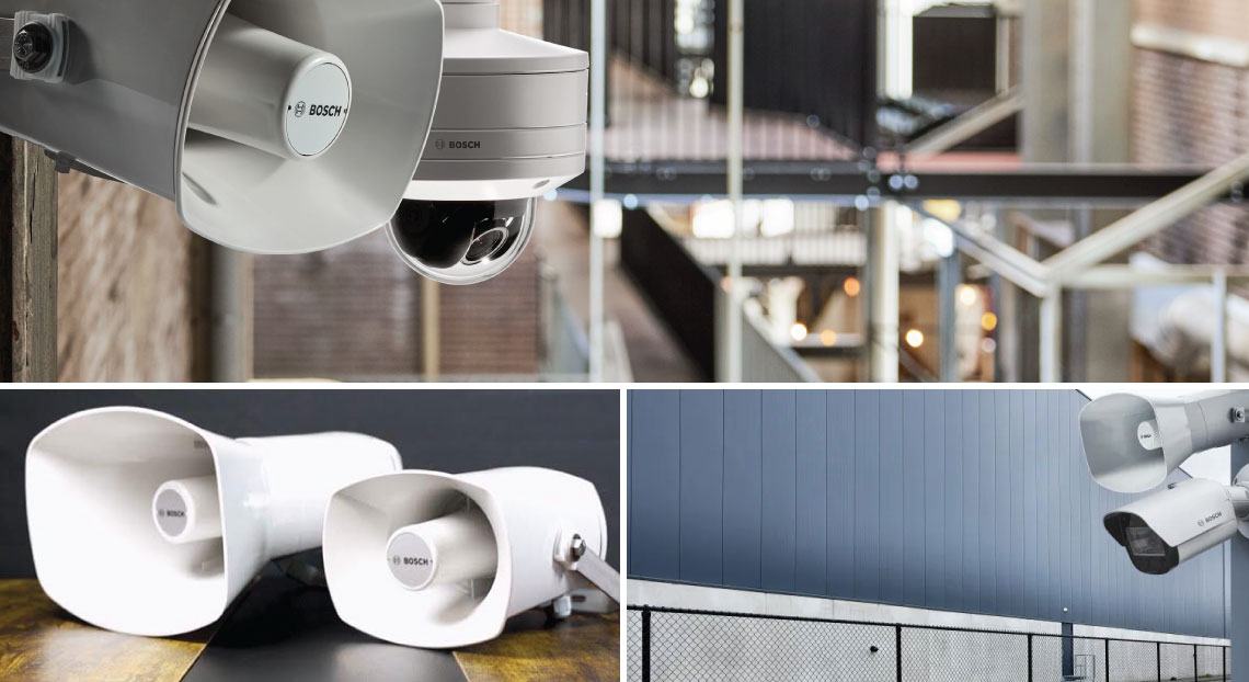 กล้องรักษาความปลอดภัยแบบ IP ของ Bosch การวิเคราะห์วิดีโอ และลำโพงระดับมืออาชีพจาก Bosch ได้รับการออกแบบมาเพื่อมอบการผสมผสานที่เป็นประโยชน์ของนวัตกรรม ความน่าเชื่อถือ และความอเนกประสงค์สำหรับแอปพลิเคชันต่างๆ โซลูชันระบบรักษาความปลอดภัยแบบรวมที่ประกอบด้วยลำโพง Horn IP ของ Bosch พร้อมกล้อง IP ของ Bosch จึงสามารถมอบความสะดวกสบายให้กับผู้จำหน่ายเพียงรายเดียวด้วยประสิทธิภาพภาพและเสียงที่ซิงโครไนซ์ที่ล้ำสมัย