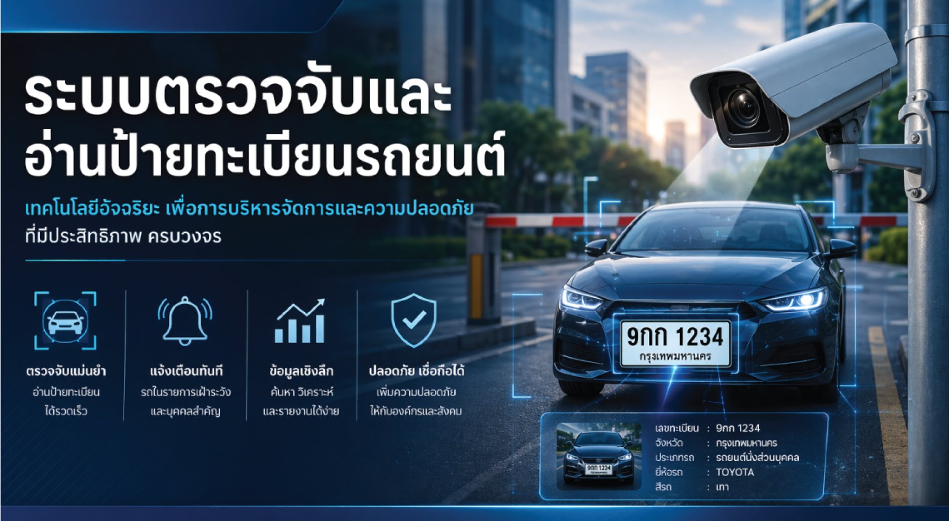 ระบบตรวจจับและอ่านป้ายทะเบียนรถยนต์ (License Plate Recognition: LPR) กำลังกลายเป็นหนึ่งในเทคโนโลยีสำคัญที่ช่วยยกระดับการบริหารจัดการด้านความปลอดภัยและการจราจรในยุคดิจิทัล โดยอาศัยการประมวลผลภาพจากกล้องวงจรปิด เพื่อนำข้อมูลป้ายทะเบียนมาแปลงเป็นข้อมูลเชิงโครงสร้าง เช่น ตัวเลข ตัวอักษร จังหวัด รวมถึงรายละเอียดของรถ เพื่อนำไปใช้ต่อยอดได้อย่างหลากหลาย
