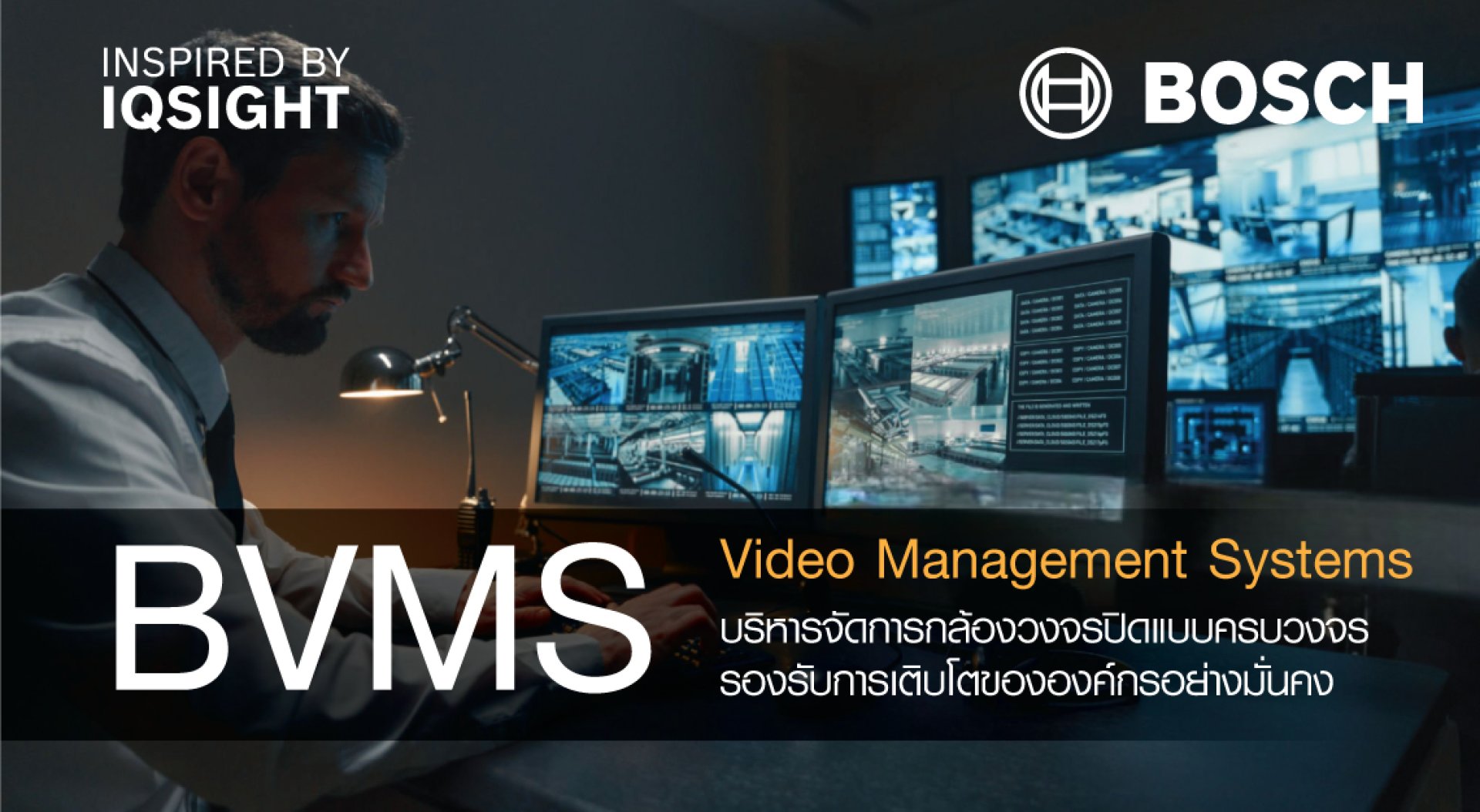 BVMS (Bosch Video Management System) คือโซลูชันระบบรักษาความปลอดภัยแบบ IP ที่ออกแบบมาเพื่อรองรับการจัดการข้อมูลวิดีโอ เสียง และข้อมูลต่าง ๆ ผ่านเครือข่ายได้อย่างครบวงจร